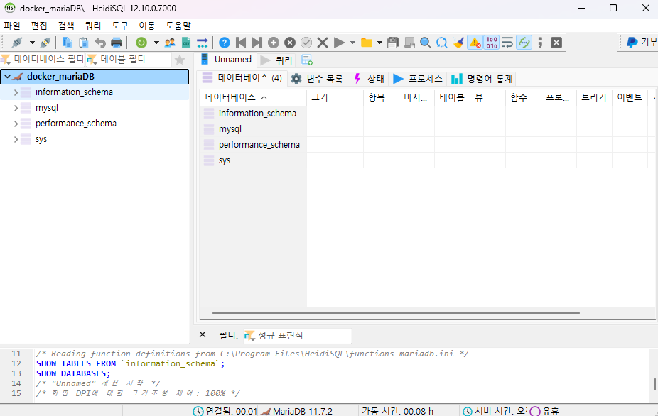 -v D:\daddy\docker\mariadb # 볼륨저장위치